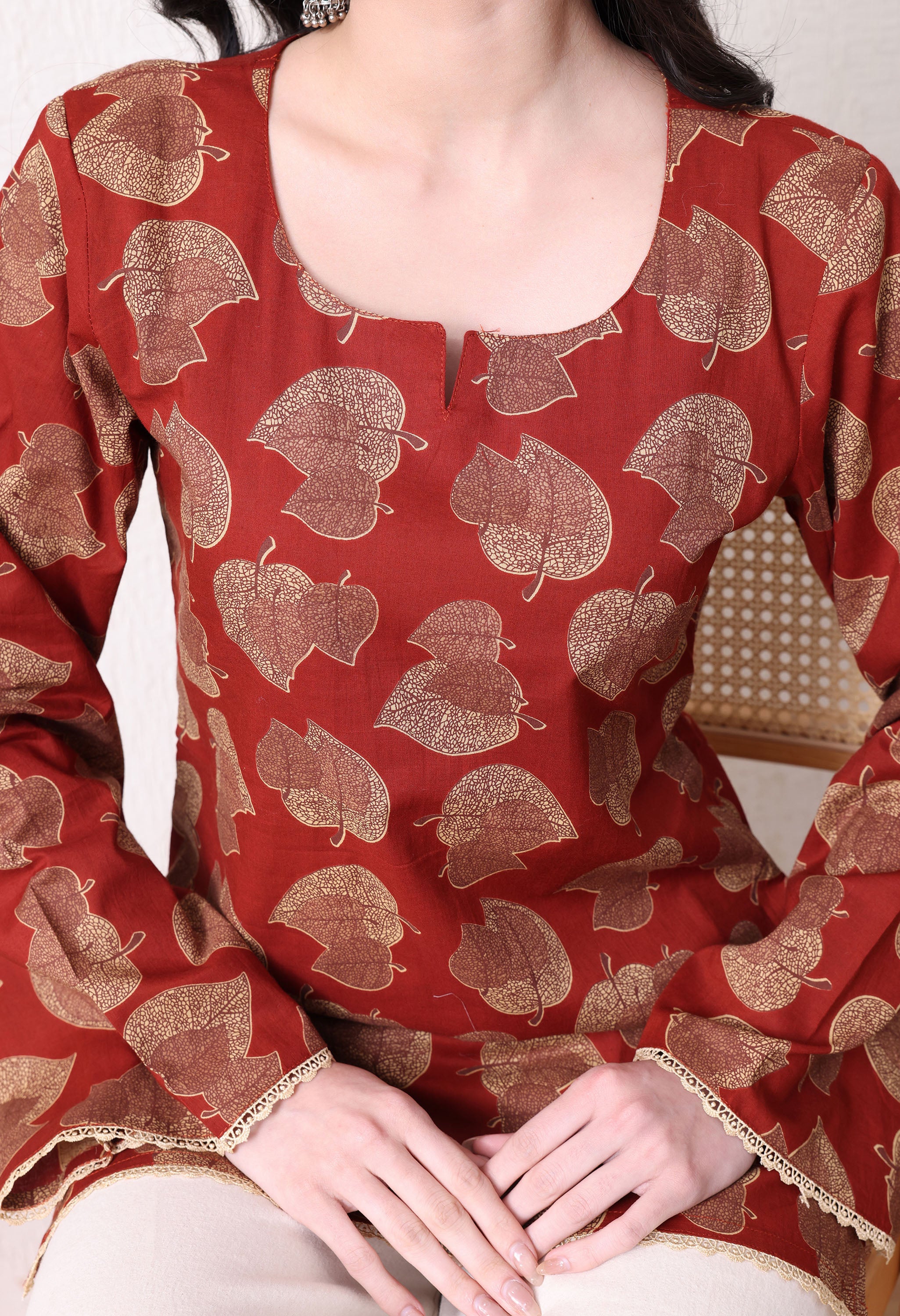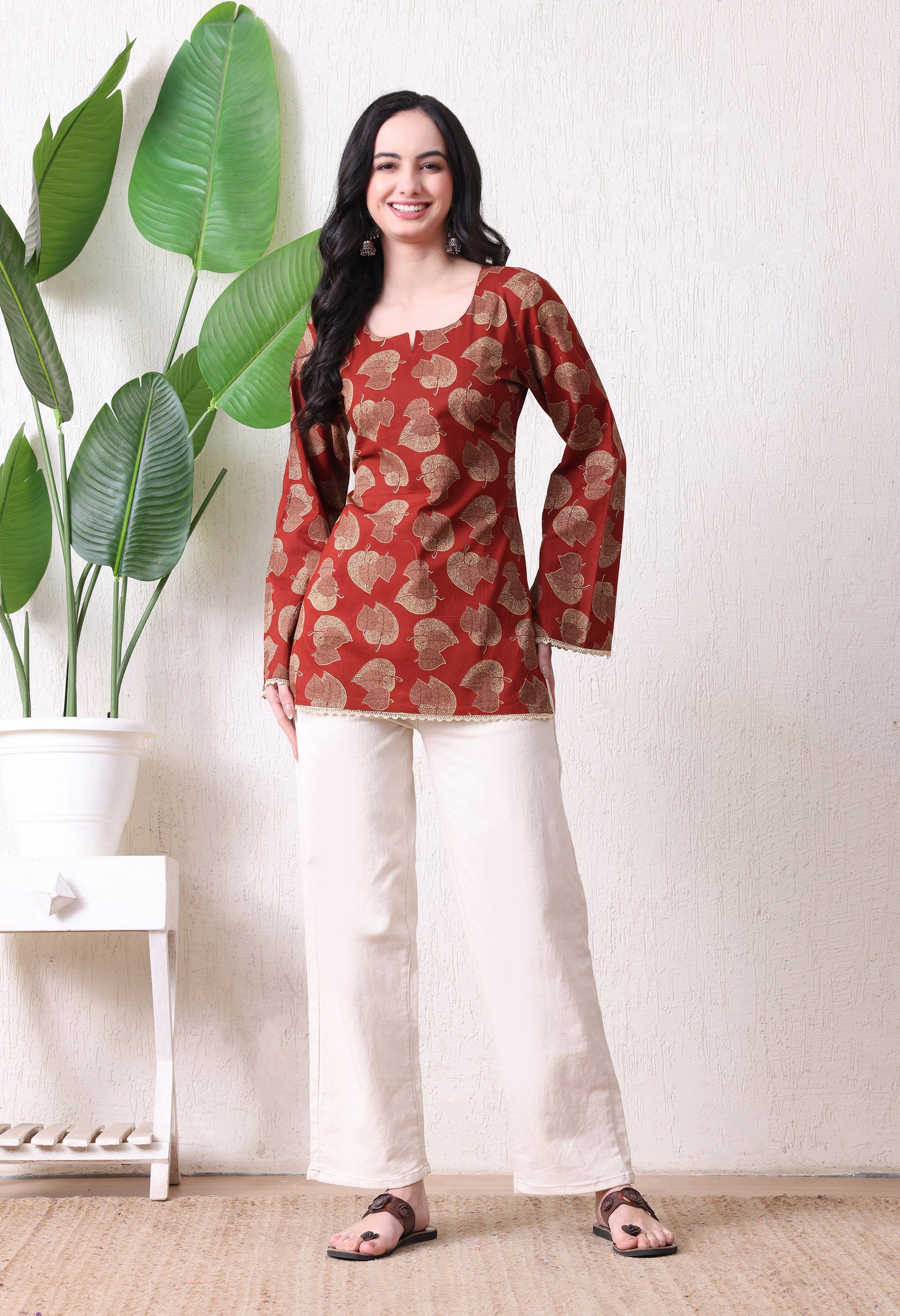 • VERSATILE STYLING: Short kurta length design with Full sleeves and a flattering Round-neckline that pairs beautifully with palazzos, trousers, or leggings for various occasions