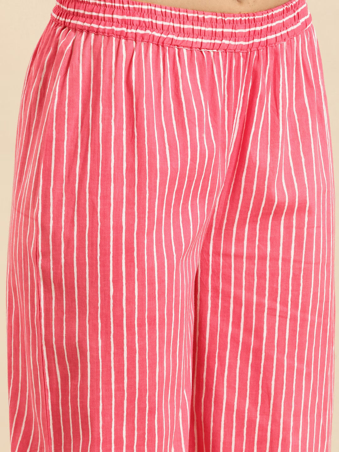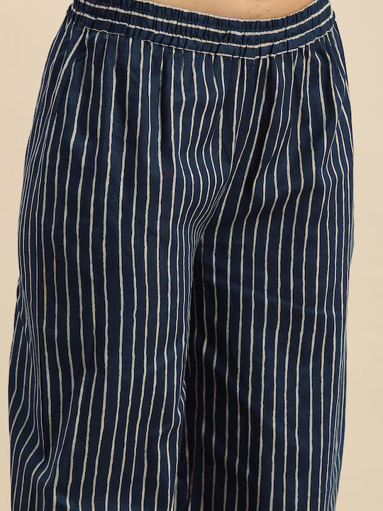 MEERA FAB Women's Cotton Printed Straight Kurta with Palazzo