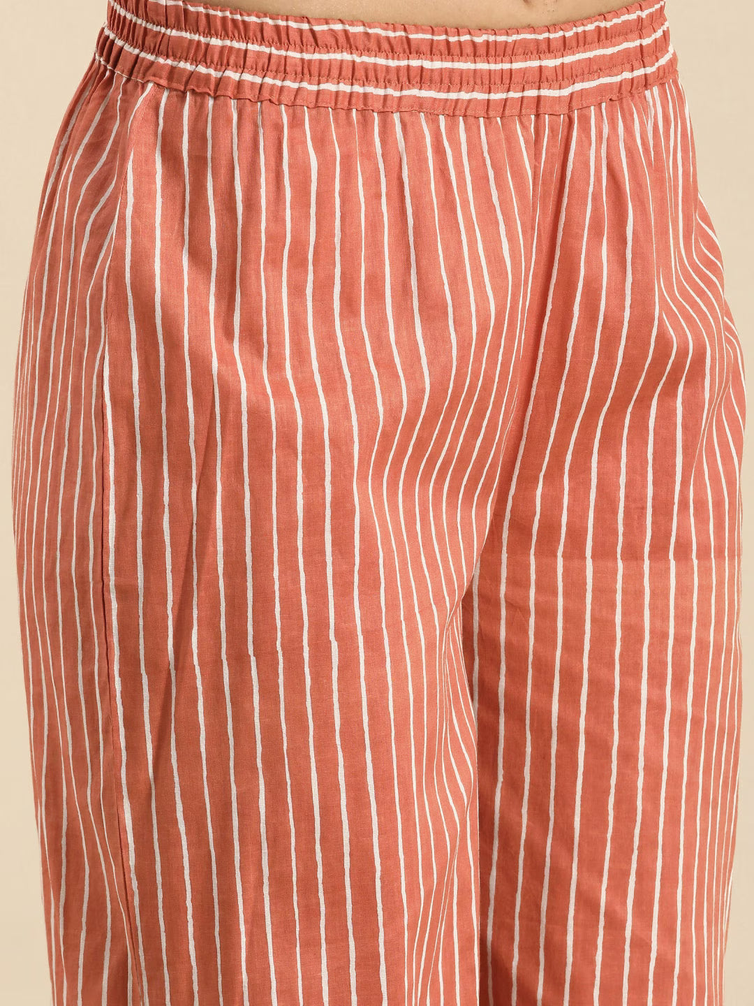 Peach MEERA FAB Women's Cotton Printed Floral Straight Kurta with Palazzo